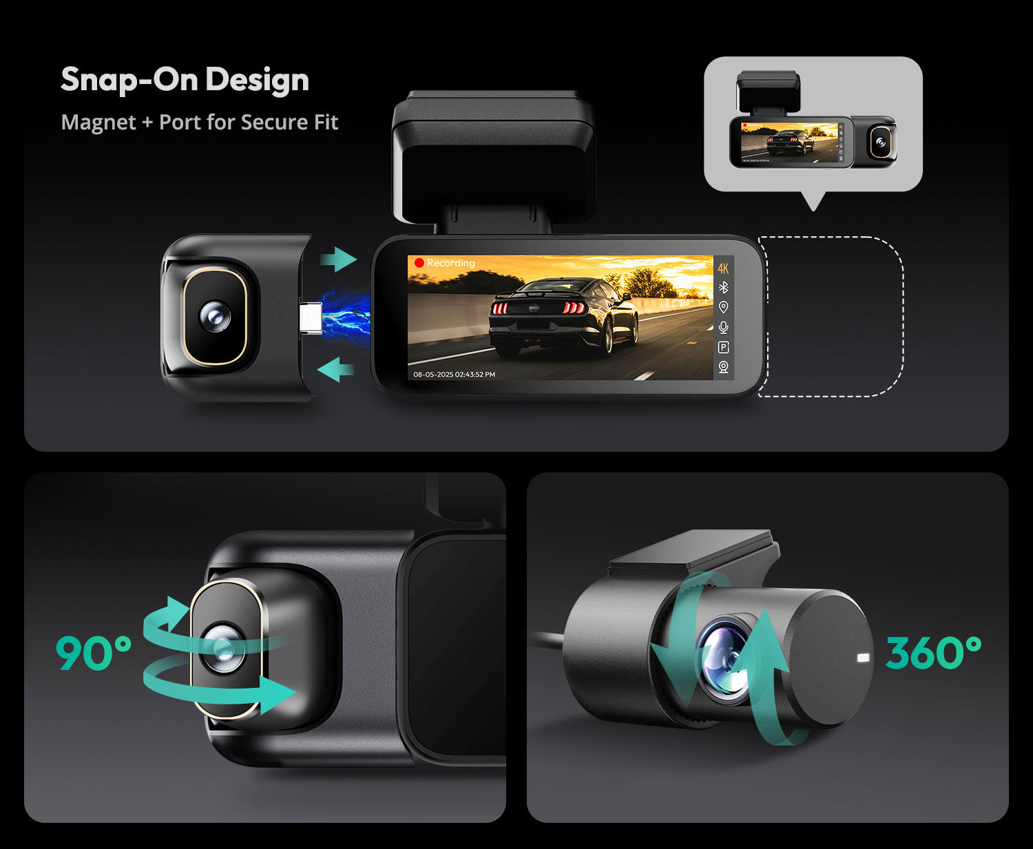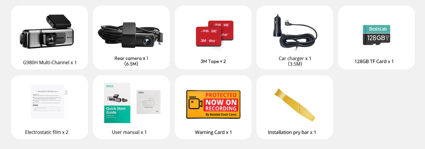 Het unieke van deze Botslab G980H Pro 3CH dashcam zijn de drie afzonderlijke camera's. De hoofdunit die op de voorruit wordt bevestigd is uitgerust met een 4K camera die de weg filmt. Aan de zijkant zit een interieur camera verwerkt die in alle richtingen gepositioneerd kan worden.. De G980H Pro 3CH is hierdoor de ideale dashcam als parkeerbeveiliging voor je auto.