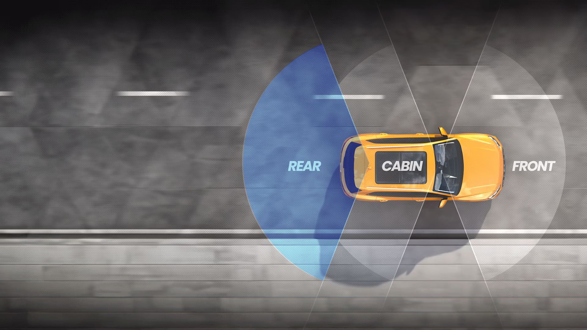 Met de kijkhoek van 145 graden wordt een groot gedeelte achter de auto opgenomen zodat je niets meer hoeft te missen. In total wordt de kijkhoek met de voor- en interieur camera 450 graden, waardoor je auto volledig rondom wordt beveiligd.