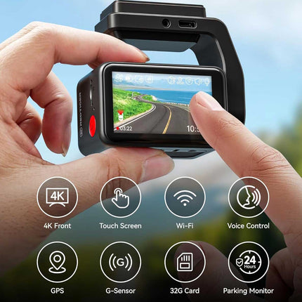De F4 4K Wifi GPS dashcam begint automatisch te filmen wanneer de auto wordt gestart en stopt met filmen wanneer de auto wordt uitgezet. Je hoeft er dus niet meer naar om te kijken als hij in de auto hangt.