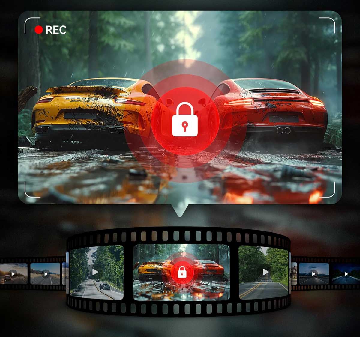 Door de ingebouwde G-sensor merkt de dashcam wanneer je een ongeluk hebt gehad. Bij een impact worden beelden automatisch beveiligd opgeslagen zodat ze niet meer verloren gaan. Ze kunnen niet meer overschreven worden en ook niet via de dashcam worden verwijderd.