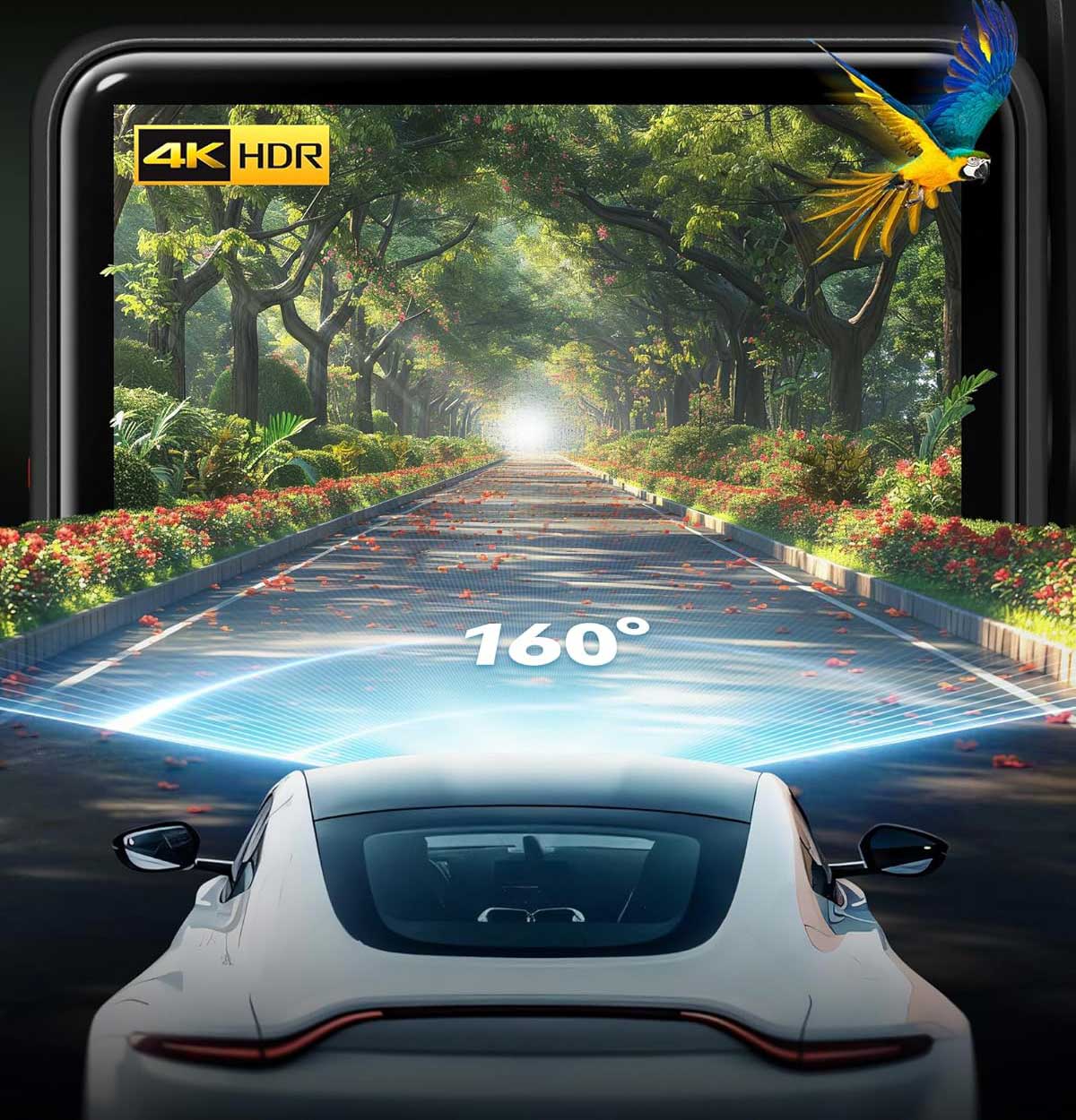 De Redtiger F4 4K Wifi GPS heeft een groothoeklens van 160 graden. Hierdoor wordt een groot gedeelte rondom de auto opgenomen zodat elke situatie goed wordt vastgelegd.