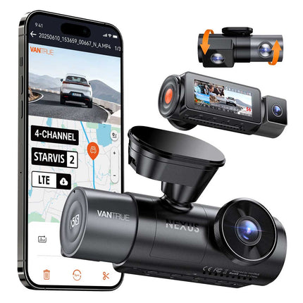 Omdat de Vantrue N5S Cloud is uitgerust met 4 camera's wordt alles in- en rondom de auto opgenomen. De voorste camera (158˚), twee interieur camera's (160˚) en achter camera (165˚) zorgen er samen voor dat je niets hoeft te missen.