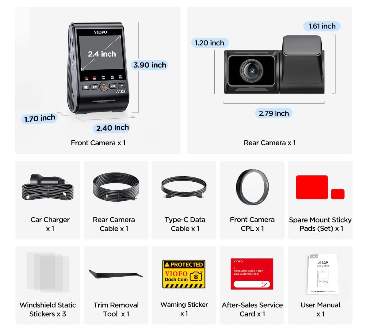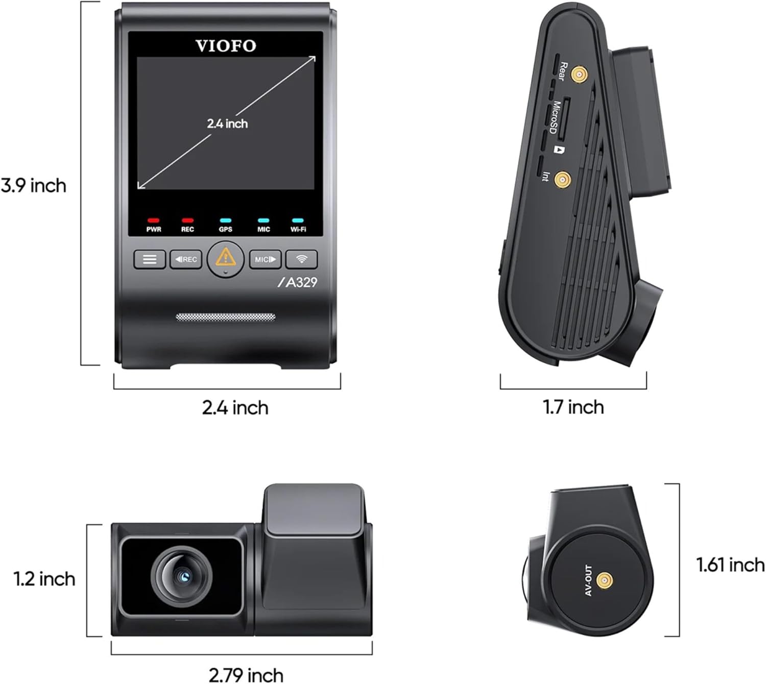 Door de 140˚ + 160˚ wideview 'fish eye' lens heeft de Viofo A329S 2CH een groot bereik en wordt bijna alles in de omgeving opgenomen.