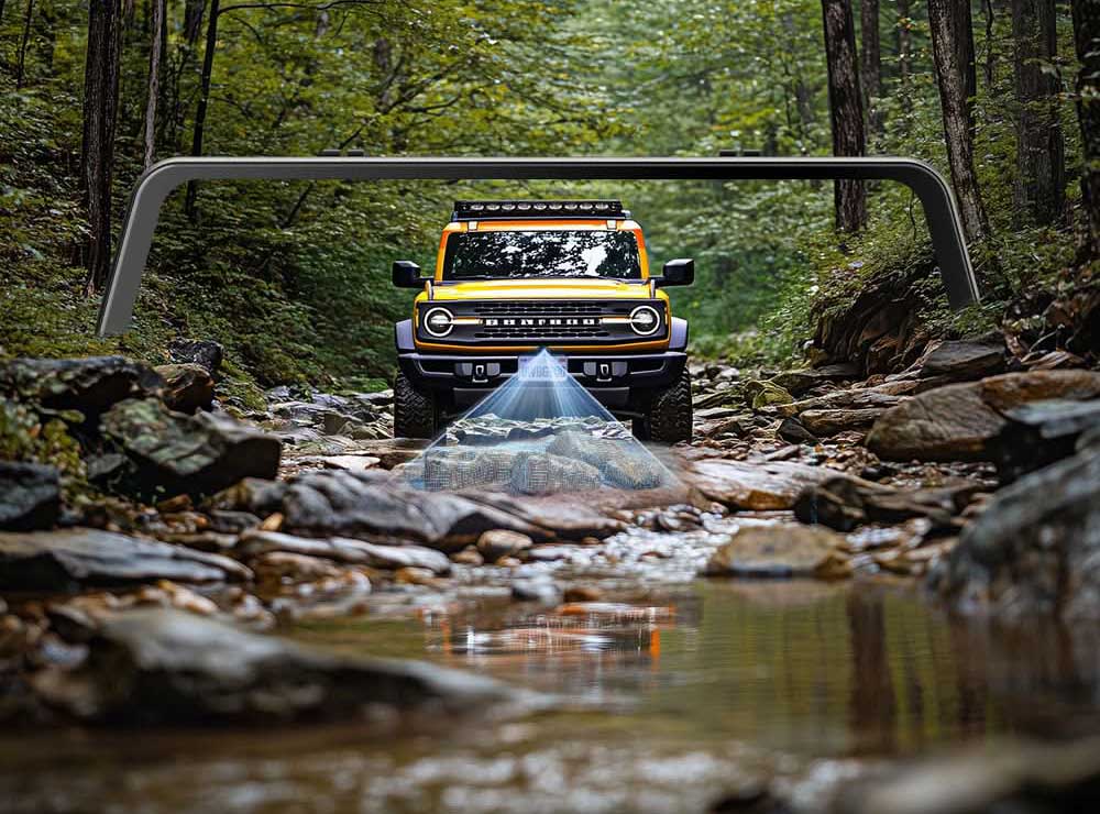 Het unieke aan deze Wolfbox G900 Tripro is de derde waterdichte bumper camera. Deze camera is speciaal ontwikkel voor 4x4 wagens of voertuigen met een lange neus. Door de extra camera aan de voorzijde krijg je de ruimte voor je auto perfect in beeld.